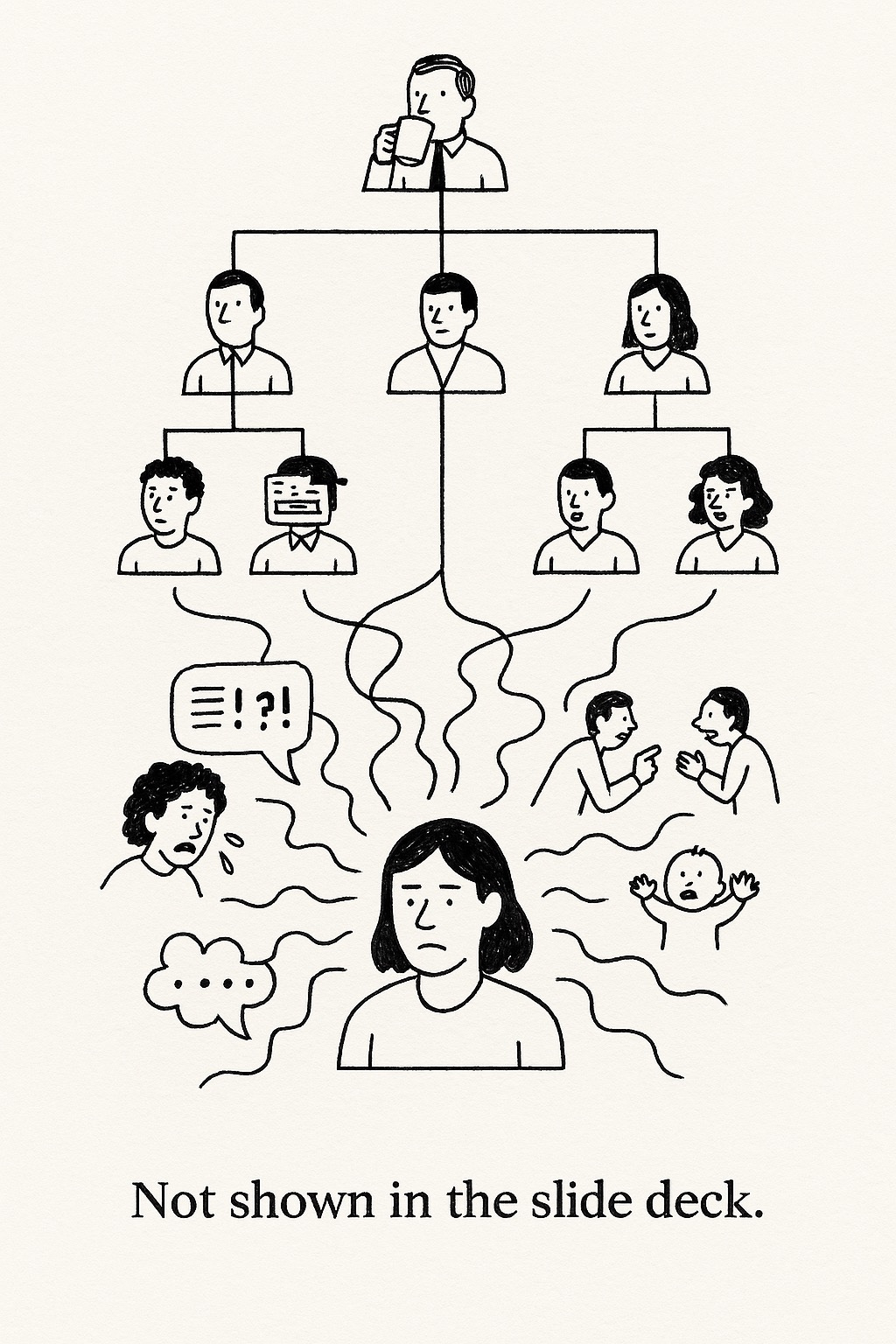 We reward what looks like confidence. We reward what sounds like clarity. And we often ignore the people doing the harder, quieter work: holding tension. Sensing mood. Naming the thing nobody wants to say out loud. Giving people room to be human before demanding performance.